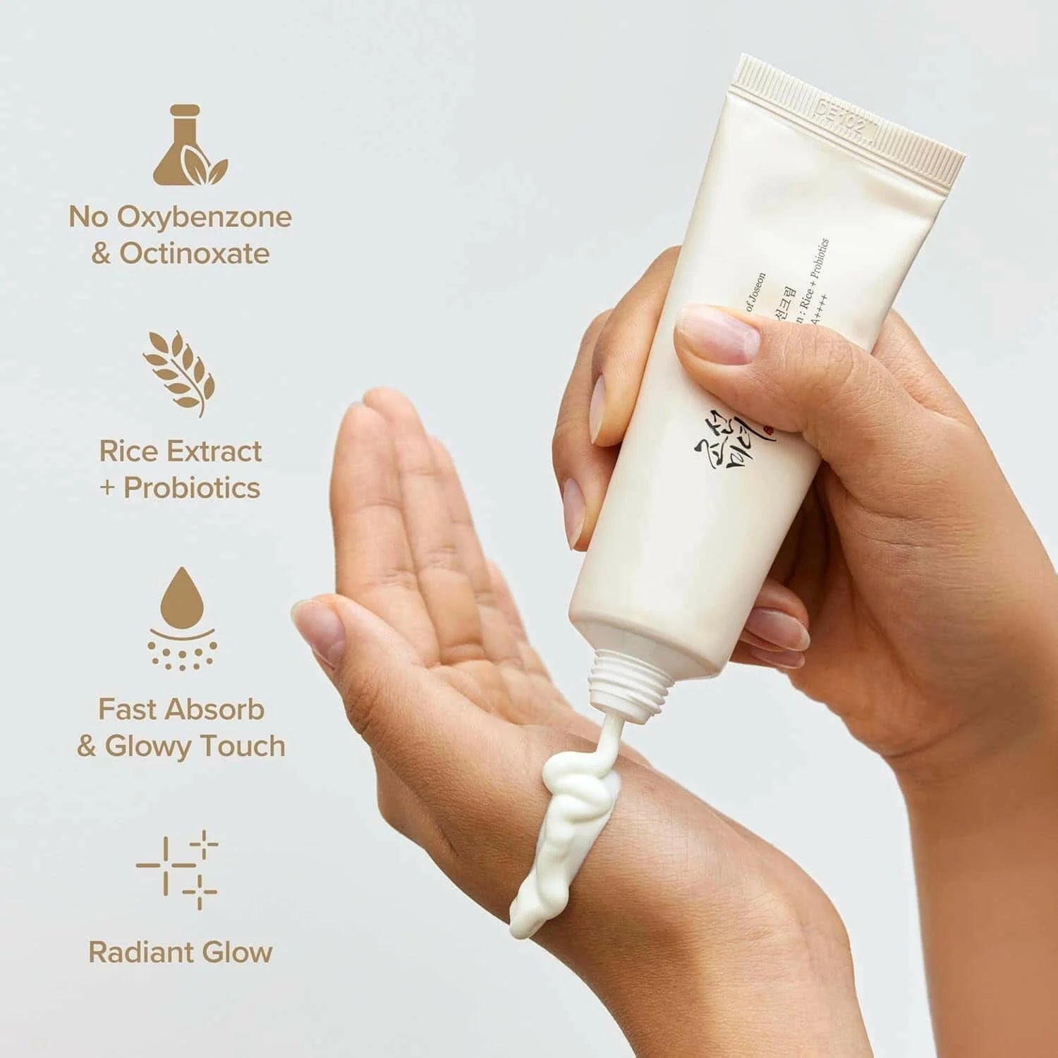 A lightweight chemical sunscreen that provides powerful broad-spectrum UV protection. Formulated with rice extract and probiotics to soothe and strengthen the skin barrier. Absorbs quickly without white cast or greasy residue. Leaves skin hydrated, calm, and protected all day.