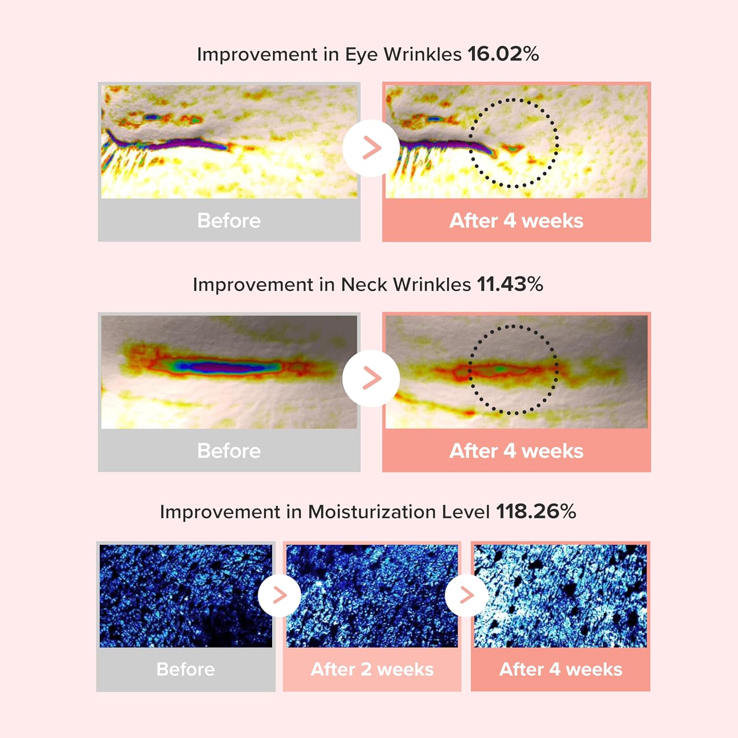 - Firms skin and reduces the look of fine lines & wrinkles